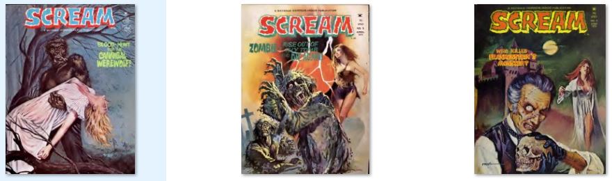 11 ISSUES IN .PDF FORMAT ON USB FLASH DRIVE comics magazines, primarily the horror anthologies Nightmare, Psycho, and Scream. It also published a small line of comic books and other magazines. Skywald's first publication was Nightmare #1 (Dec. 1970). The company lasted through the end of 1974 or early 1975, with Psycho #24 (March 1975) its final publication.