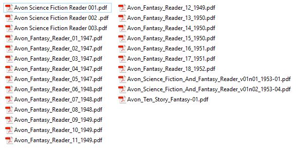 18 ISSUES IN .PDF FORMAT ON USB FLASH DRIVE by then little recognized writers such as H. P. Lovecraft, Ray Bradbury, C. L. Moore, A. Merritt, Murray Leinster and William Hope Hodgson. Avon Fantasy Reader was published from 1946 to 1952 and had 18 issues in full. Avon Fantasy Reader was a digest size magazine (sometimes classed as a series of anthologies) which reprinted science fiction and fantasy literature by now well-known authors.