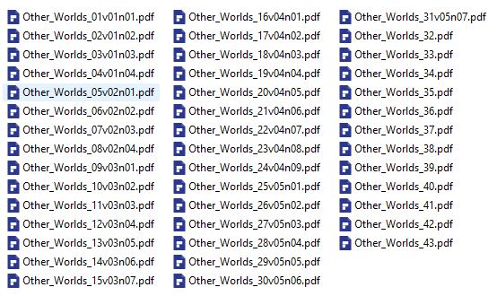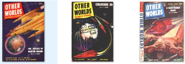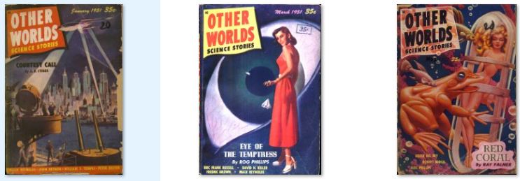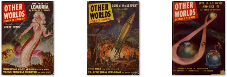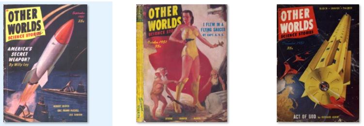 43 ISSUES IN .PDF FORMAT ON USB FLASH DRIVE were three related US magazines edited by Raymond A. Palmer. Other Worlds was launched in November 1949 by Palmer's Clark Publications and lasted for four years in its first run, with well-received stories such as "Enchanted Village" by A.E. van Vogt and "Way in the Middle of the Air", one of Ray Bradbury's "Martian Chronicle" stories. Since Palmer was both publisher and editor, he was free to follow his own editorial policy, and presented a wide array of science fiction.