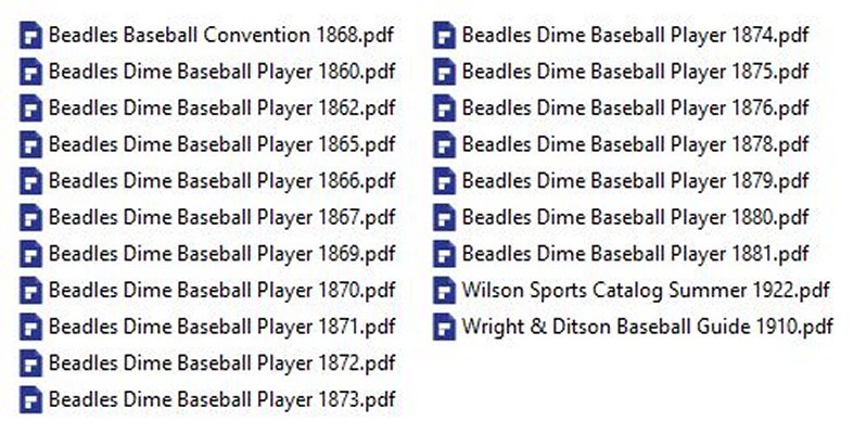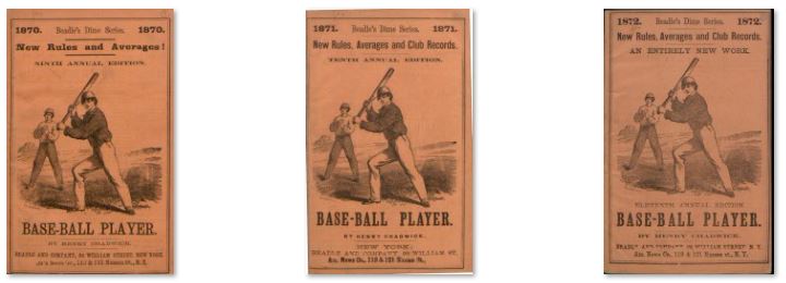 17 ISSUES IN .PDF FORMAT ON USB FLASH DRIVE the first annual baseball guide on public sale, as well as the Spalding and Reach annual guides for a number of years and in this capacity promoted the game and influenced the infant discipline of sports journalism. In his 1861 Beadle guide, he listed totals of games played, outs, runs, home runs, and strikeouts for hitters on prominent clubs, the first database of its kind. His goal was to provide numerical evidence to prove which players helped a team to win.