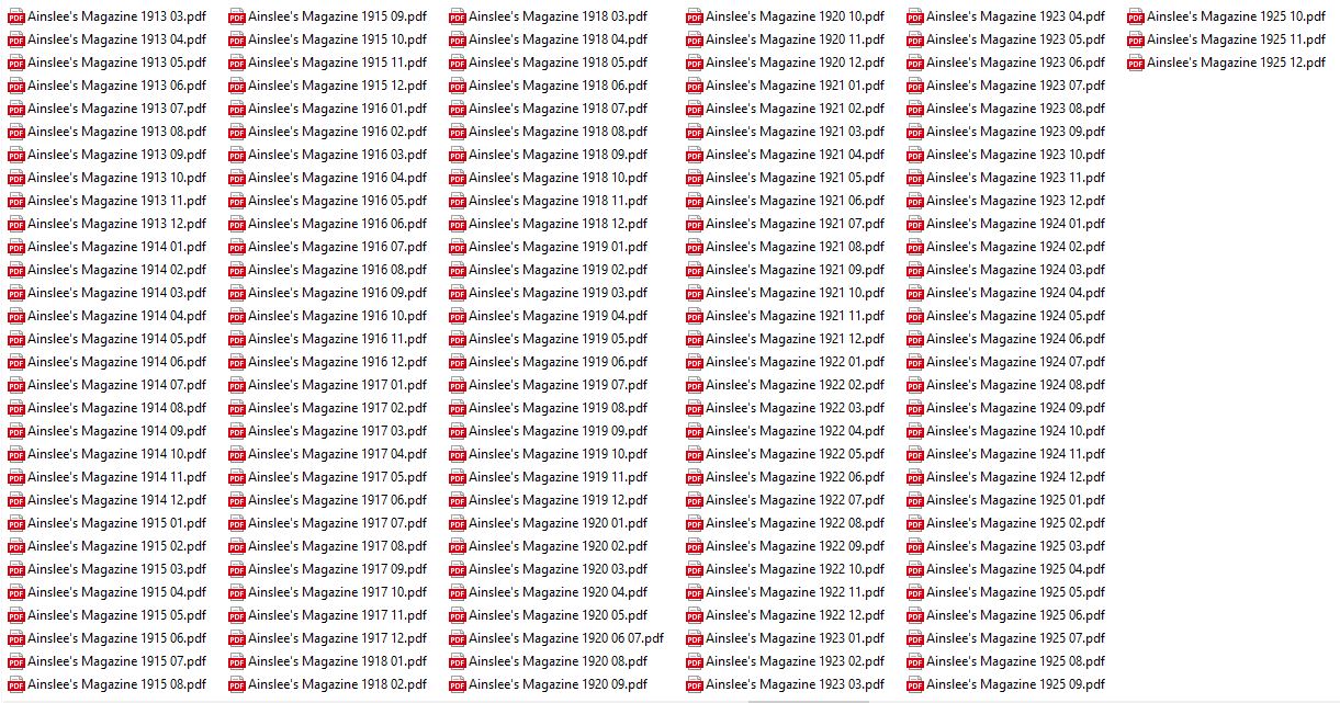 333 ISSUES IN .PDF FORMAT ON USB FLASH DRIVE BLACK AND WHITE INTERIOR ARCHIVE ISSUES to December 1926. It was originally published as a humor magazine called The Yellow Kid, based on the popular comic strip character. It was renamed Ainslee's the following year. The magazine's publishers were Howard, Ainslee & Co., a division of the Street & Smith publishing house in New York City.