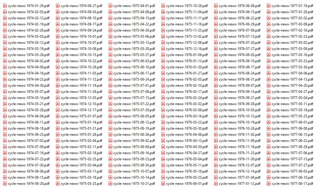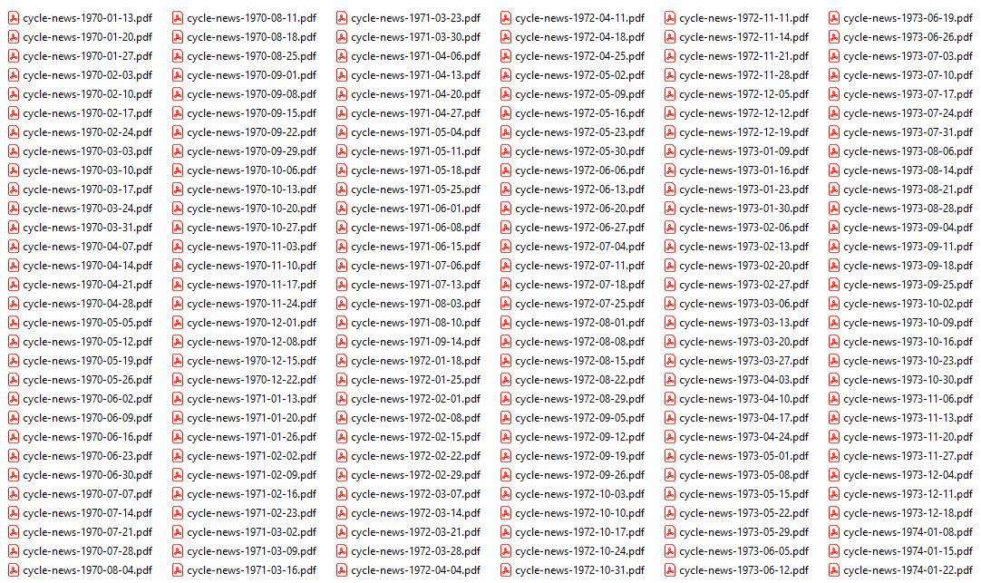 476 ISSUES IN .PDF FORMAT ON USB FLASH DRIVE based in the United States, it was a weekly print publication from 1965 to 2010 and switched to a weekly digital magazine in February 2011. The magazine is headquartered in Irvine, California and is best known for coverage of all forms of motorcycle racing.