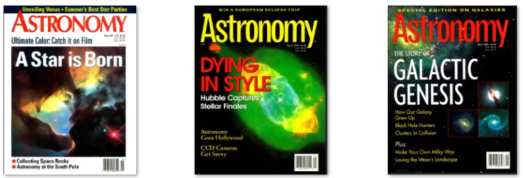 Astronomy is a magazine about the science and hobby of astronomy. Based near Milwaukee in Brookfield, Wisconsin, it was produced by Kalmbach Publishing. Astronomy’s readers include those interested in astronomy and those who want to know about sky events, observing techniques, astrophotography, and amateur astronomy in general. Astronomy was founded in 1973 by Stephen A. Walther, a graduate of the University of Wisconsin–Stevens Point and amateur astronomer. The first issue, August 1973, consisted of 48 pages with five feature articles and information about what to see in the sky that month. Issues contained astrophotos and illustrations created by astronomical artists. Walther had worked part time as a planetarium lecturer at the University of Wisconsin–Milwaukee and developed an interest in photographing constellations at an early age. Although even in childhood he was interested to obsession in astronomy, he did so poorly in mathematics that his mother despaired that he would ever be able to earn a living. However he graduated in Journalism from the University of Wisconsin-Stevens Point, and as a senior class project he created a business plan for a magazine for amateur astronomers. With the help of his brother David, he was able to bring the magazine to fruition.