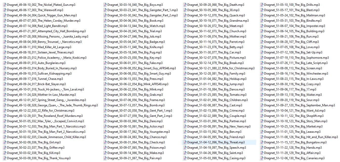 Dragnet, the brainchild of Jack Webb, may very well be the most well-remembered, and the best, radio police drama series. From September, 1949 through February 1957, Dragnet's 30 minute shows, broadcast on NBC, brought to radio true police stories in a low-key, documentary style