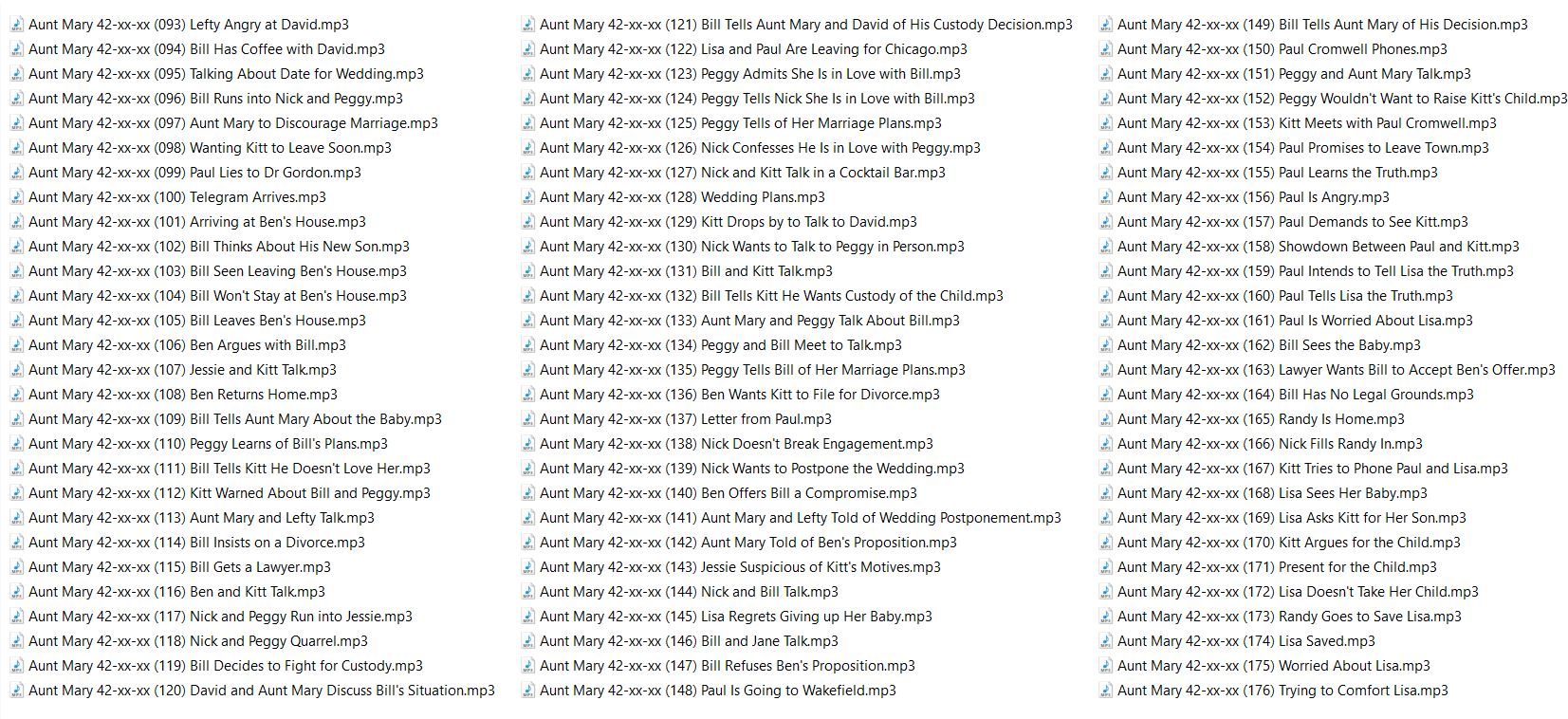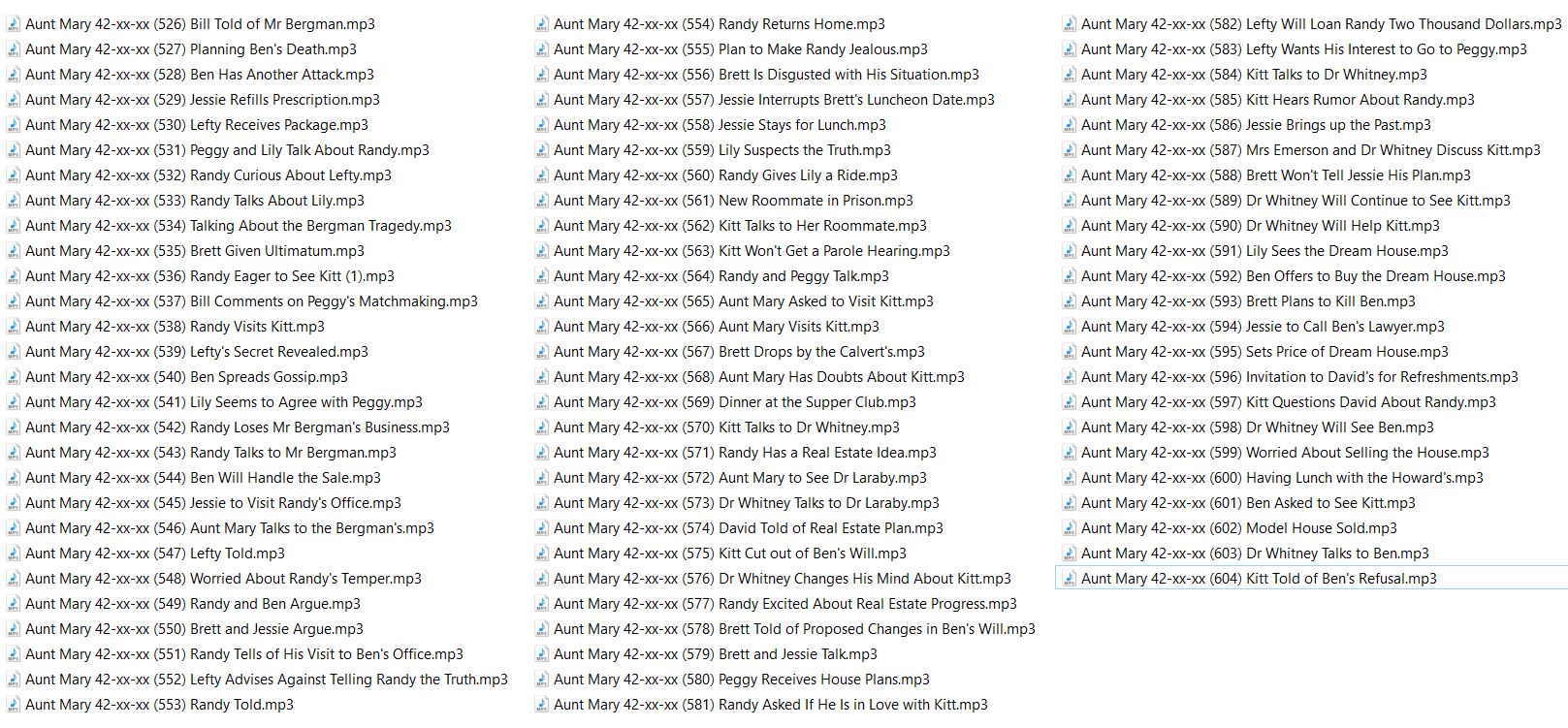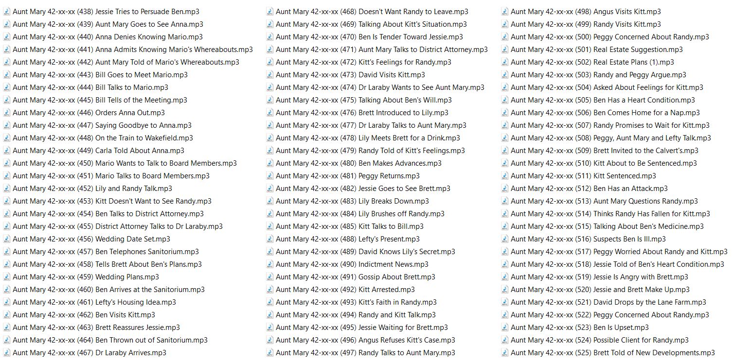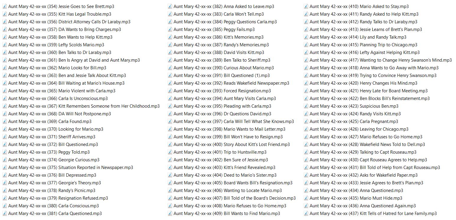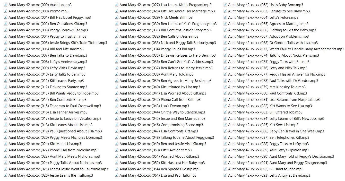 Aunt Mary is a radio soap opera in the United States. Episodes were 15 minutes long, running Monday through Friday. The show began with regional broadcasts on the West Coast, but it eventually was distributed more widely.