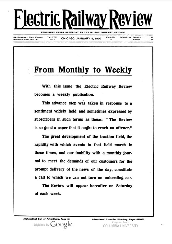 ELECTRIC RAILWAY REVIEW 1900S MAGAZINE